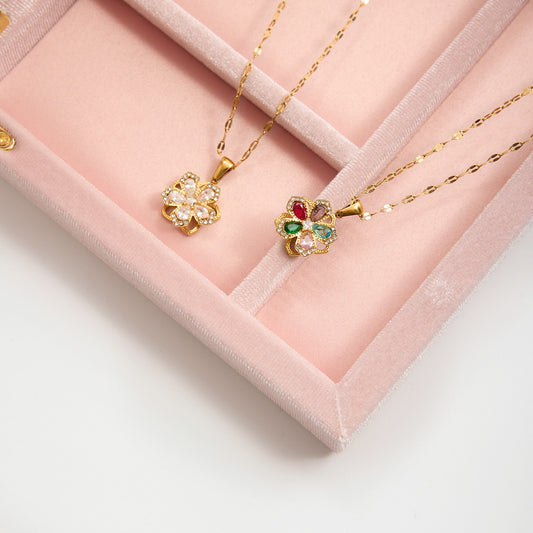 18K Gold Sweet Bloom Spinning Flower Pendant Necklace