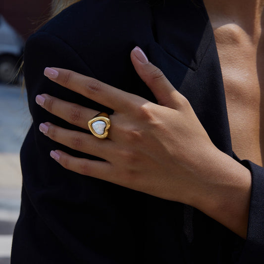 18K Gold Pearl Heart Statement Ring
