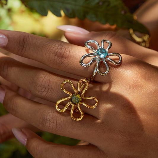 18K Gold Bejeweled Flower Statement Ring