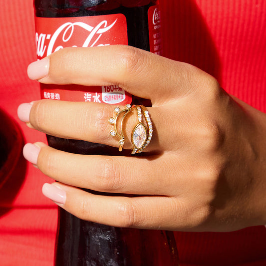 18K Gold Daily Glam Flower Heart CZ Statement Rings Set