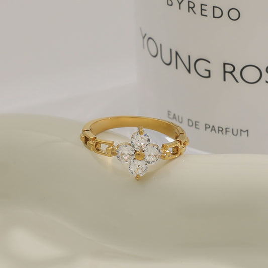 18K Gold Four Leaf Clover Flower Chain Band Stacking Ring