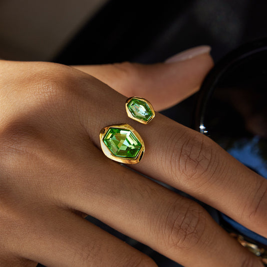 18K Gold Royal Emerald Green Statement Cuff Ring