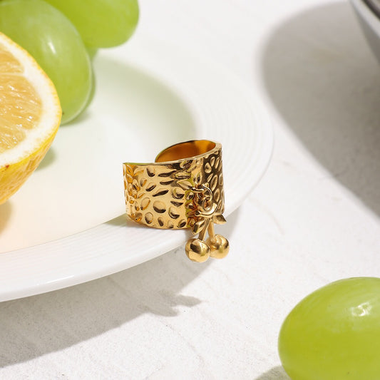 18K Gold Heart Palm Tree Charm Chain Band Ring