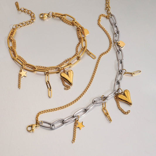 18K Gold Heart Chain Trendy Everyday Bracelet Stack