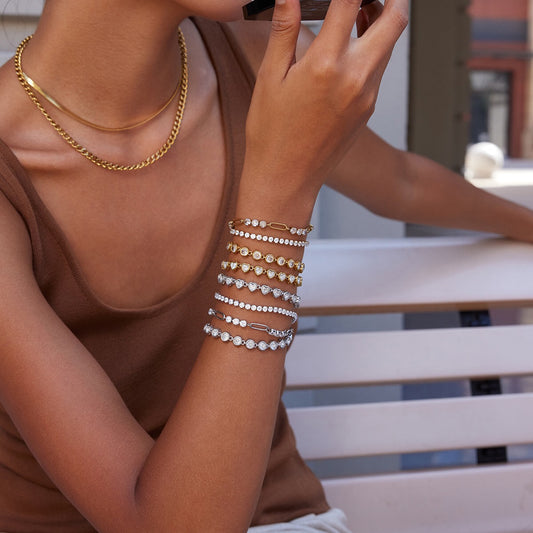 18K Gold Extra Bling Paperclip Chain Bangle Tennis Bracelet Stack