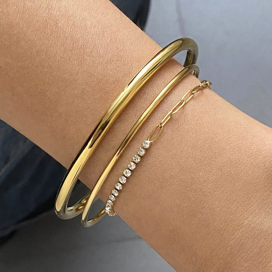 18K Gold Minimalist Paperclip Chain Silm Bangle Tennis Bracelet Stack