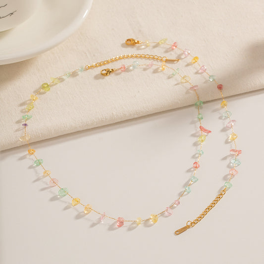 18K Gold Purple Dream Beaded Chain Butterfly Bangle Bracelet Stack
