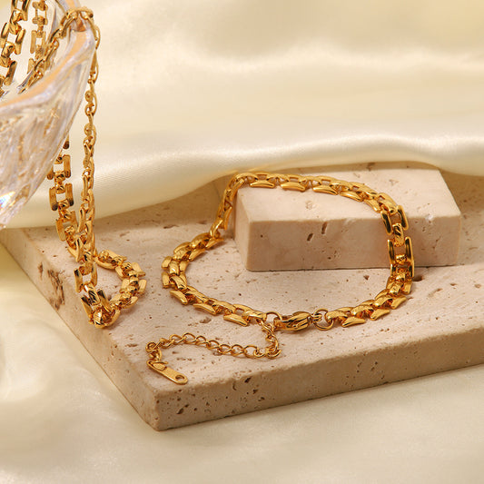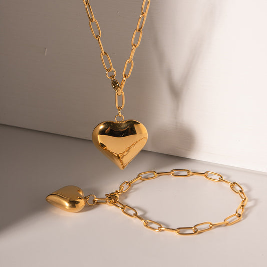 18K Gold Chunky Paperclip Heart Charm Bracelet