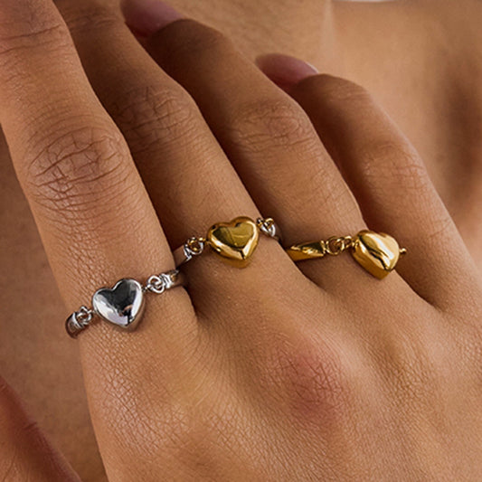 18K Gold and Silver Two Tone Rotating Heart Stacking Ring