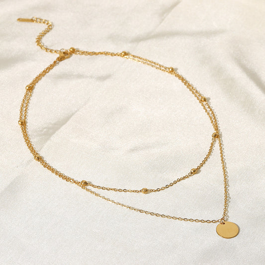 18K Gold Delicate Disc Pendant Beaded Chain Layered Necklace