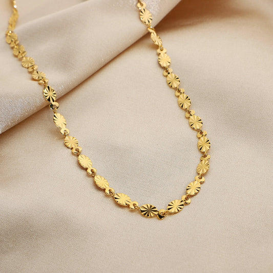 18K Gold Dainty Flower Disc Chain Choker Necklace