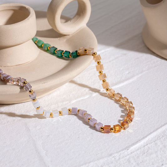 18K Gold Color Candy Beaded Chain Necklace