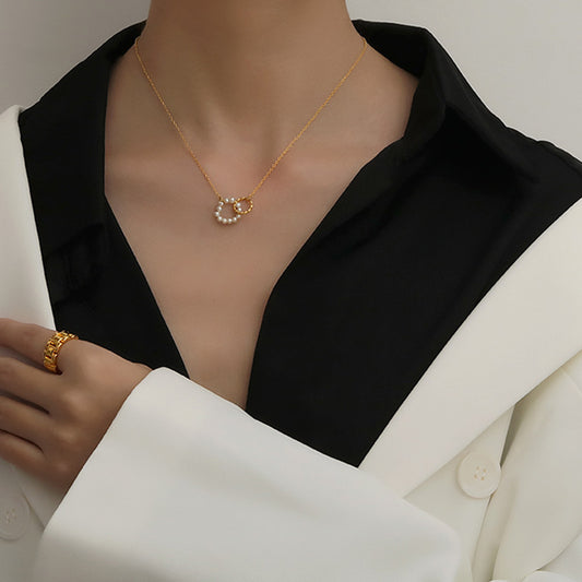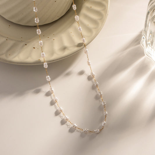 18K Gold Elegant Dainty Pearl Chain Choker Necklace