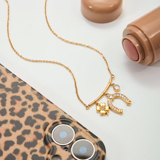 18K Gold Wicked Luck Horseshoe Clover Charm Necklace