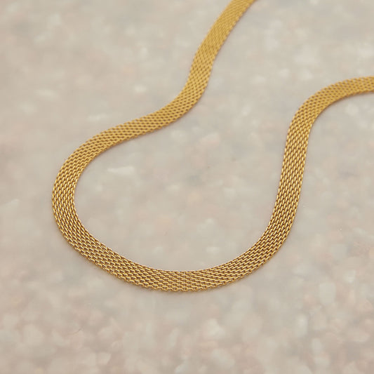 18K Gold Knotted Herringbone Snake Chain Choker Necklace