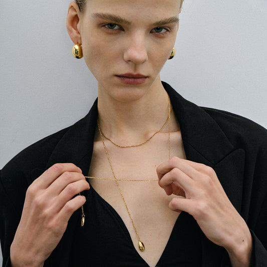 18K Gold Minimalist Raindrop Dainty Lariat Necklace
