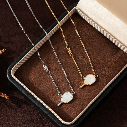 18K Gold Mother of Pearl Pickleball Pendant Necklace