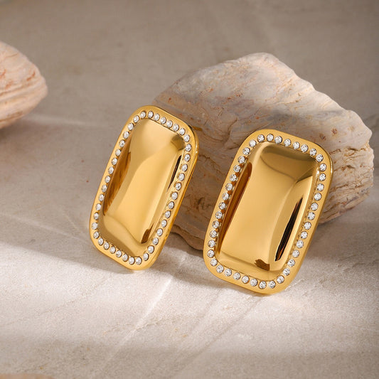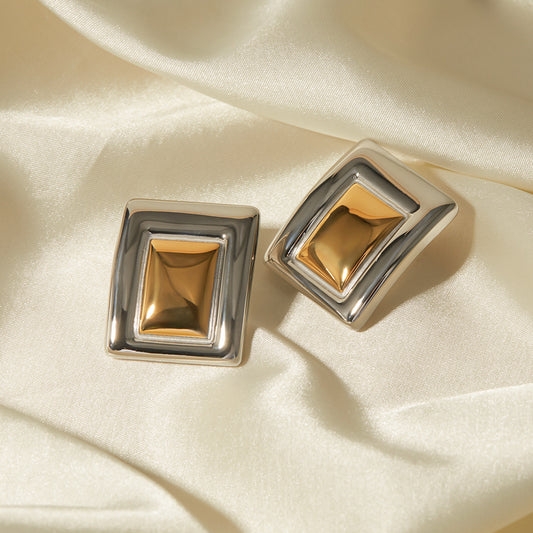 18K Gold Ribbed Triangle Statement Stud Earrings