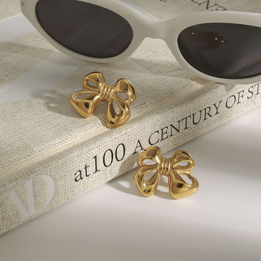 18K Gold Bow Small Hoop Huggie Earrings with Charm