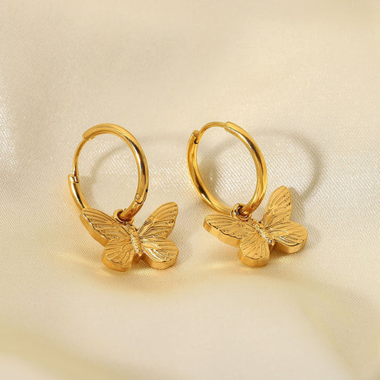 18K Gold Butterfly Small Hoop Huggie Earrings with Charm