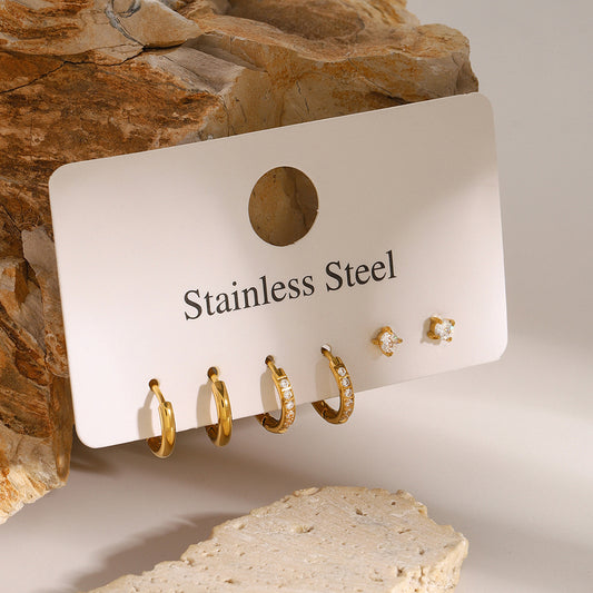 18K Gold Celestial Studs Charm Huggie Earrings Set