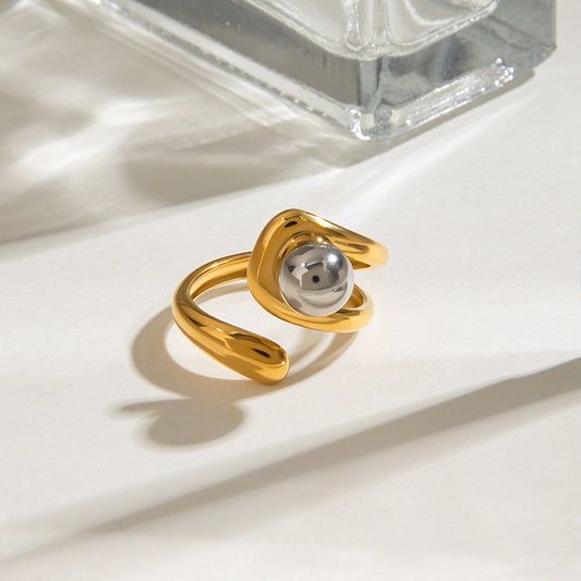 18K Gold and Silver Two Tone Orbit Beads Cuff Ring