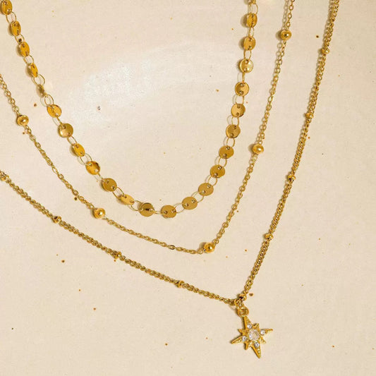 18K Gold Northern Star Pendant Chain Layered Necklace Set