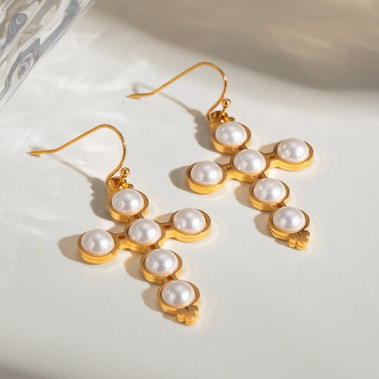 18K Gold Eternal Grace Tennis Pearl Stud Dangle Earrings