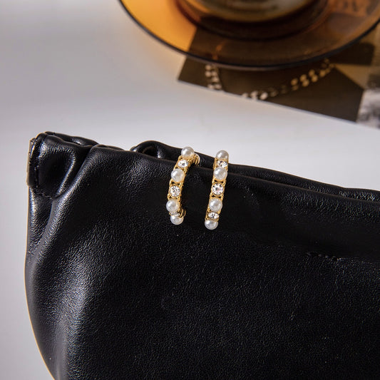18K Gold Bling Pearl Small Hoop Huggie Earrings