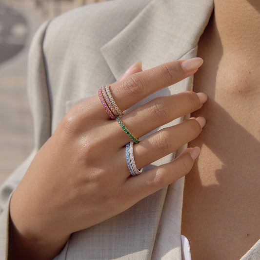 18K Gold and Silver Two Tone Noble Multiple Linked Eternity Spinelli Ring Stack