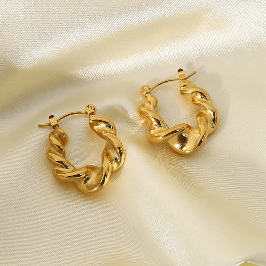 18K Gold Bling Twisted Small Hoop Huggie Earrings