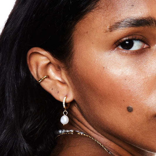18K Gold Pearl Twisted Small Hoop Huggie Earrings