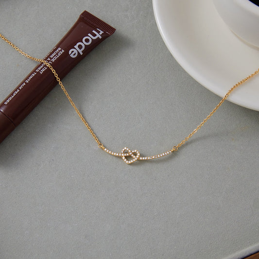 18K Gold Heart Knot Bling Dainty Pendant Necklace
