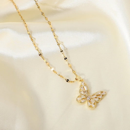 18K Gold Bling Butterfly Necklace
