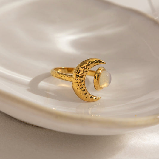 18K Gold Celestial Affair Sun and Moon Opal Statement Ring