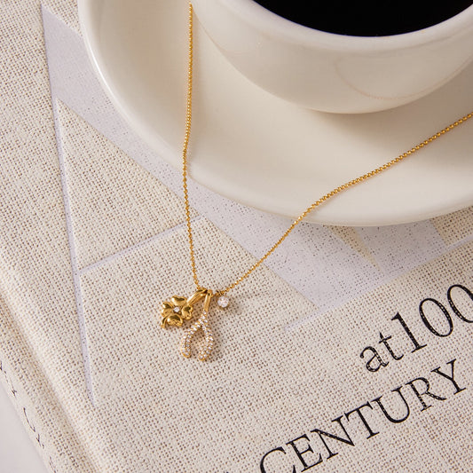 18K Gold Lucky You Clover Wishing Bone Dainty Charm Necklace