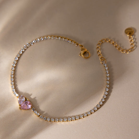 18K Gold Pink Promise Heart Dainty Tennis Chain Bracelet