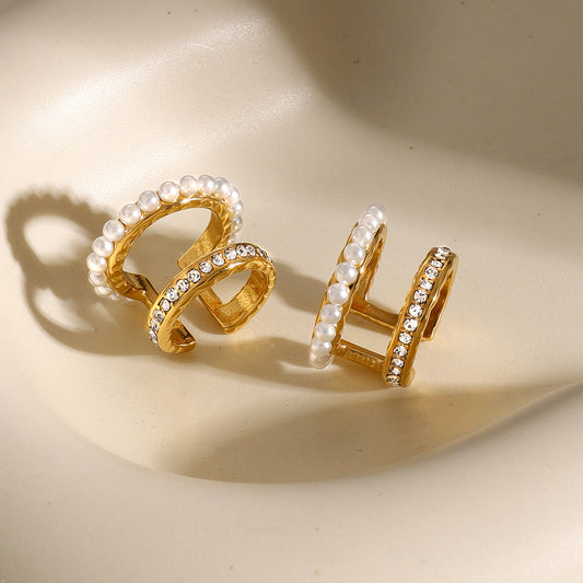 18K Gold Pearl Twisted Small Hoop Huggie Earrings