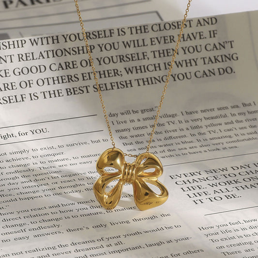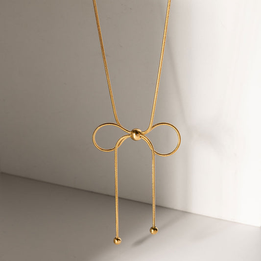 18K Gold Bow Pendant Necklace