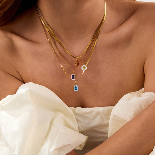18K Gold Playful Color Birthstone Pendant Herringbone Snake Chain Necklace