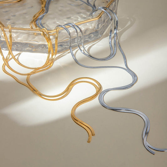 - Chain Necklaces: Classic and timeless, our waterproof chain necklaces come in sleek stainless steel finishes, perfect for layering or wearing solo for a minimalist look.