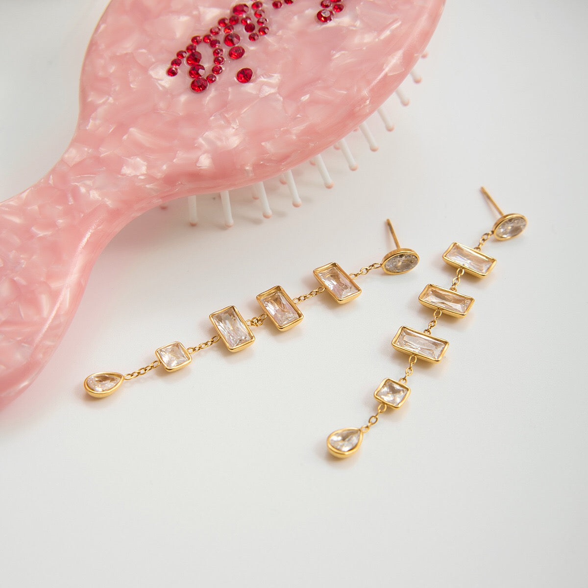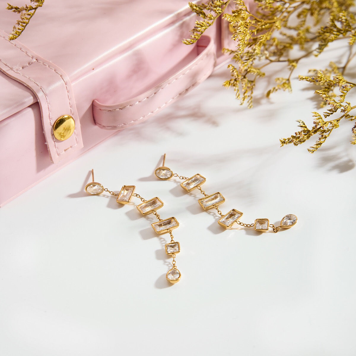 18K Gold Allure CZ Long Drop Dangle Earrings