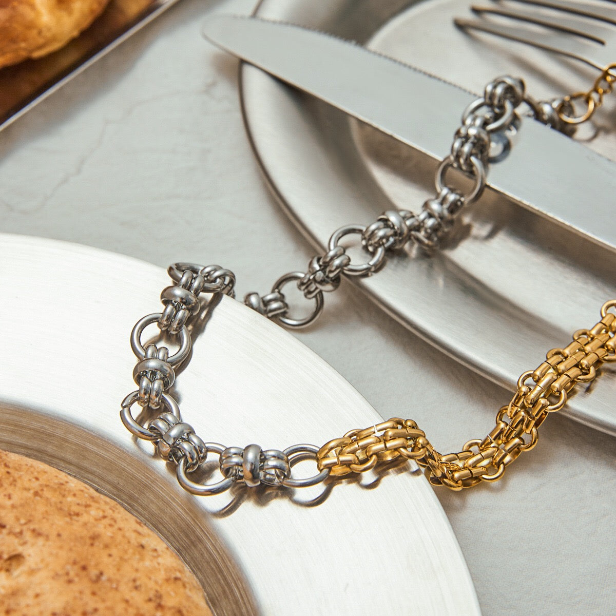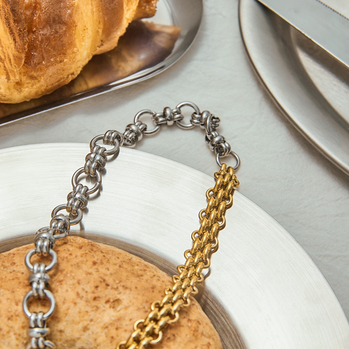18K Gold and Silver Two Tone Circle Chunky Chain Layered Necklace Set