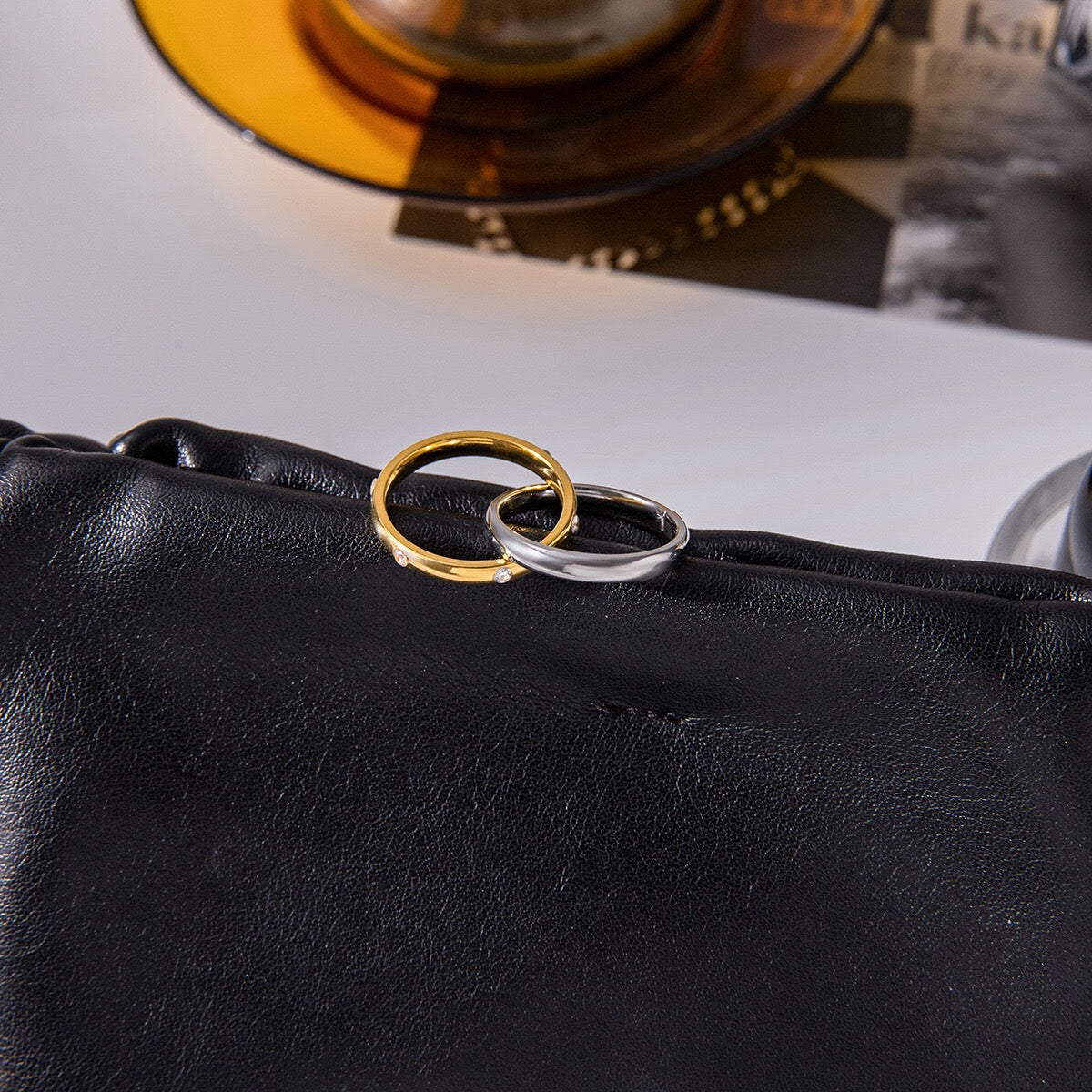 Impress your girlfriend with this exquisite two-tone Spinelli Trinity ring stack—where designer-inspired elegance meets effortless minimalism. Each delicate band features a refined linked design that whispers sophistication without shouting for attention. Crafted in 18K gold and silver, this dainty stack is built to last with waterproof and tarnish-resistant properties, so her gift keeps its lustrous glow through every adventure. Perfect for layering or wearing individually, it's the kind of chic, trendy piece that makes her feel like the main character. Give her jewelry that's as timeless as your love.