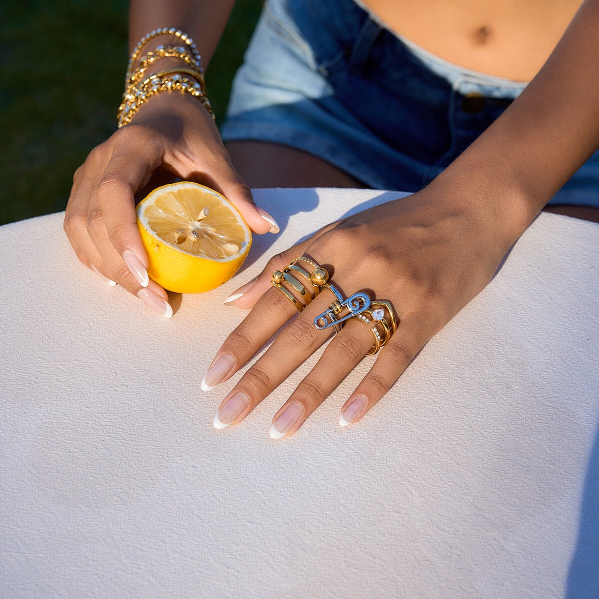 Rock this bold two-tone safety pin statement ring and wear your strength on your finger. Crafted in 18K gold and silver, this chic piece carries powerful symbolism—a reminder that she's got this, no matter what. With its trendy, edgy aesthetic and waterproof, non-tarnish construction, it's the perfect gift for your daughter who isn't afraid to stand out. Whether she's expressing her individuality or celebrating resilience, this ring makes a statement that lasts. Layer it with her other favorites or let it shine solo—either way, it's jewelry with meaning and style. Shop now and give her a piece that speaks volumes.