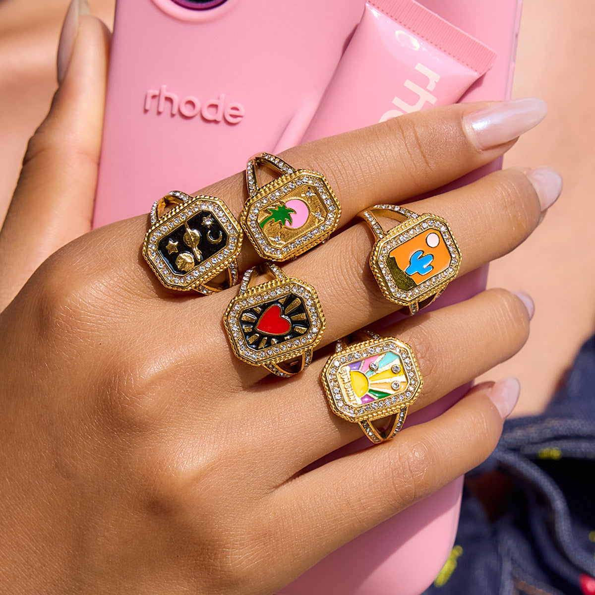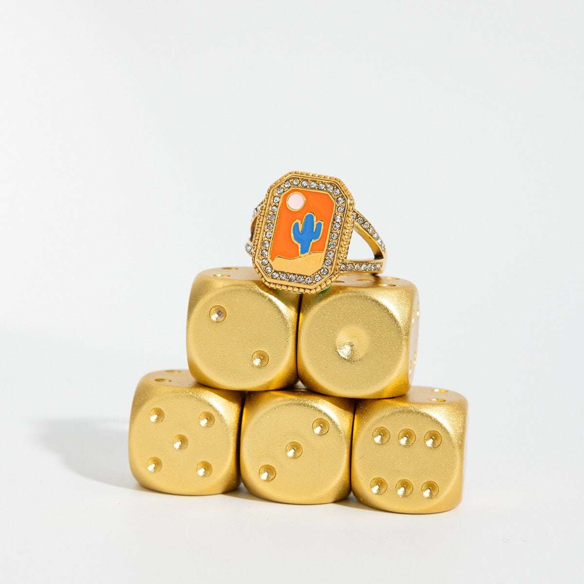 Add a pop of color and fun with the 18K Gold Bejeweled Girl Boss Signet Statement Ring. Trendy and chic, it’s the perfect gift for your best friend who loves to shine. Waterproof and tarnish-free, this ring keeps up with every adventure. Shop now and sparkle bright!