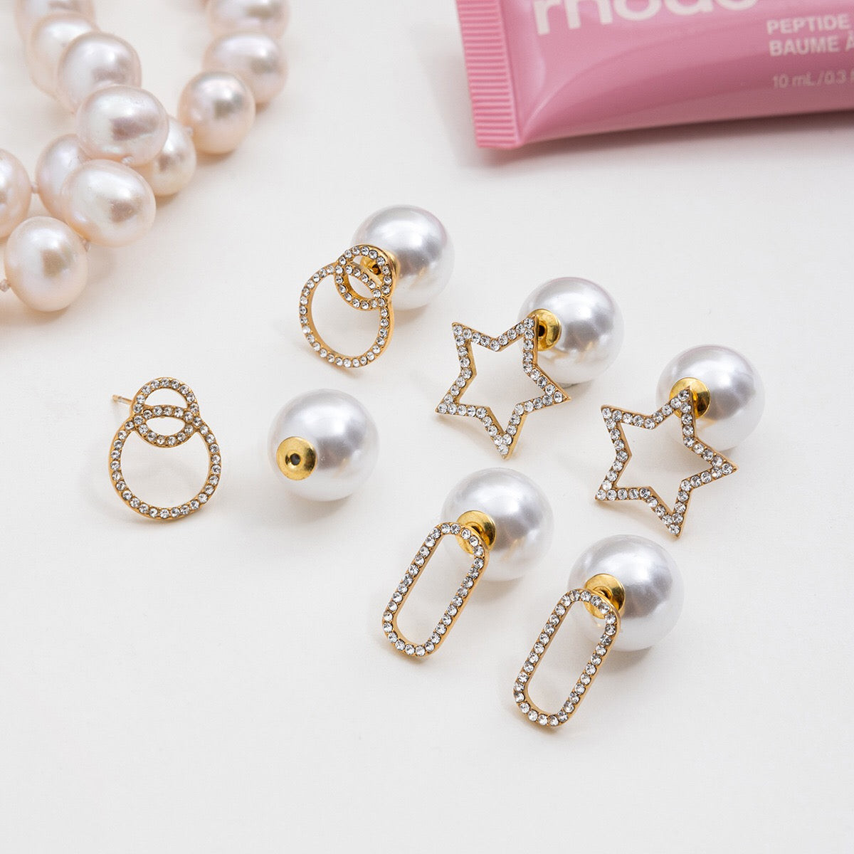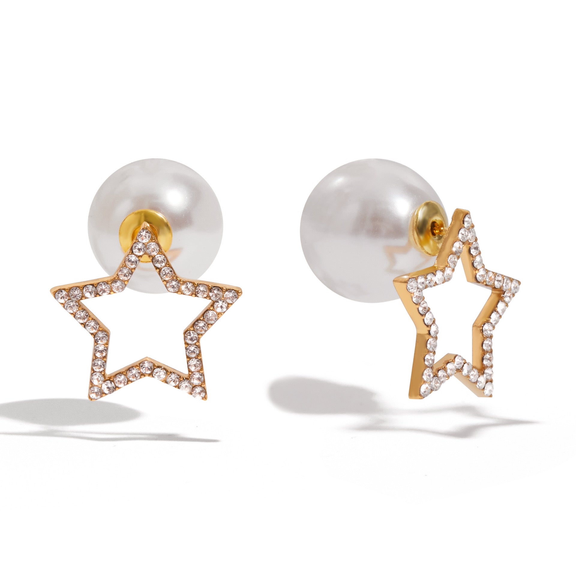 18K Gold Born Star Stud Earrings Pearl Ear Cuffs Set