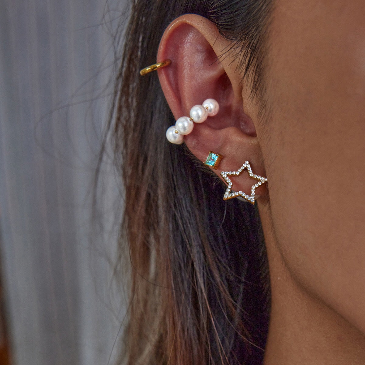 Shine like a star with the 18K Gold Playful Star Stud Earrings Pearl Ear Cuffs Set. Featuring sparkling aquamarine and elegant pearls, this super gorgeous and chic set adds a magical touch to any outfit. Waterproof and tarnish-free, itâs the perfect gift to make your girlfriend feel truly special. Ready to dazzle? Shop now and let your style sparkle!
