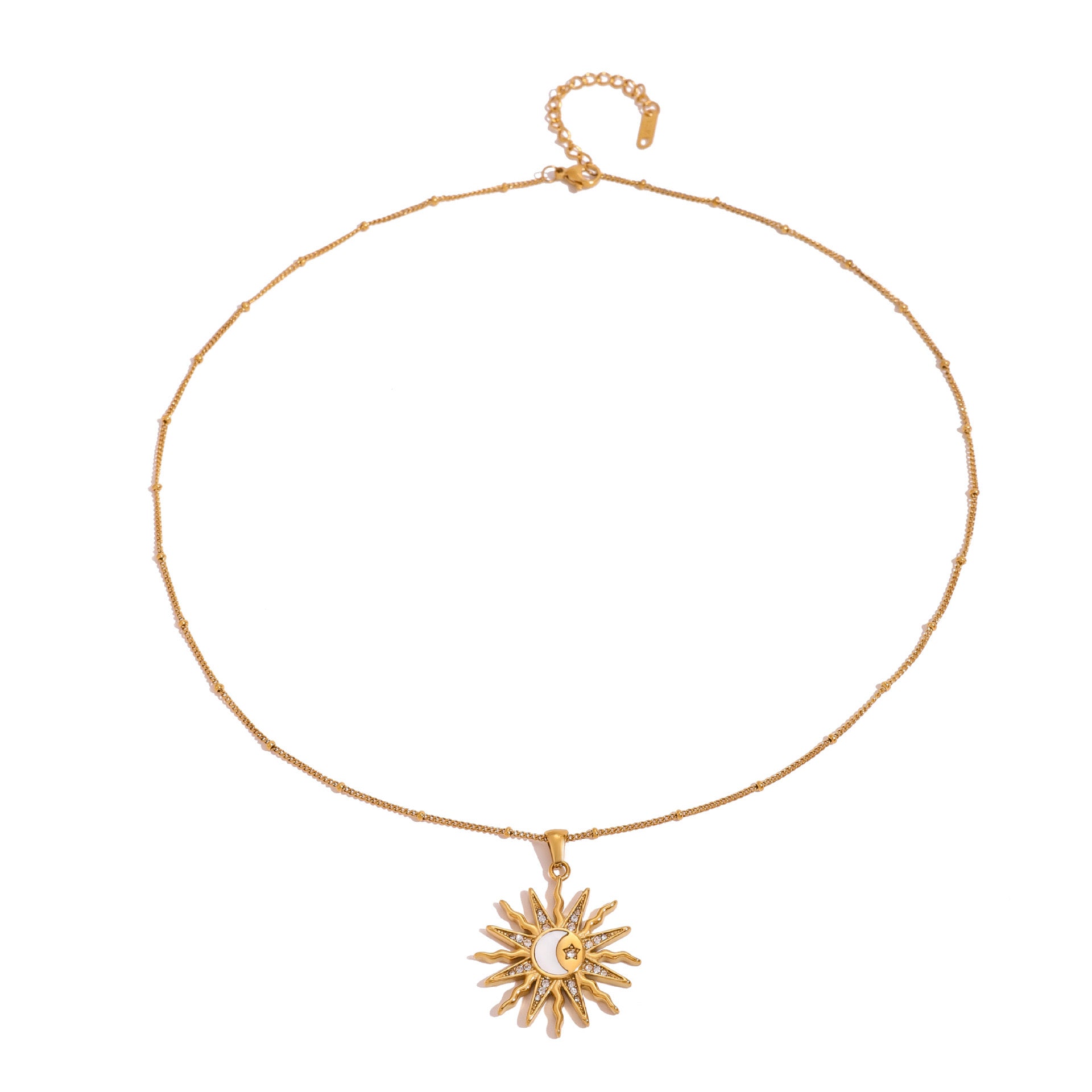 Add a touch of luxury to your look with our 18K Gold Bright Sun Pendant Necklace. The super cool and chic design exudes great energy and symbolism, making it a perfect gift for your best friend or loved one. This extra long necklace is a must-have for your collection. Shop now!