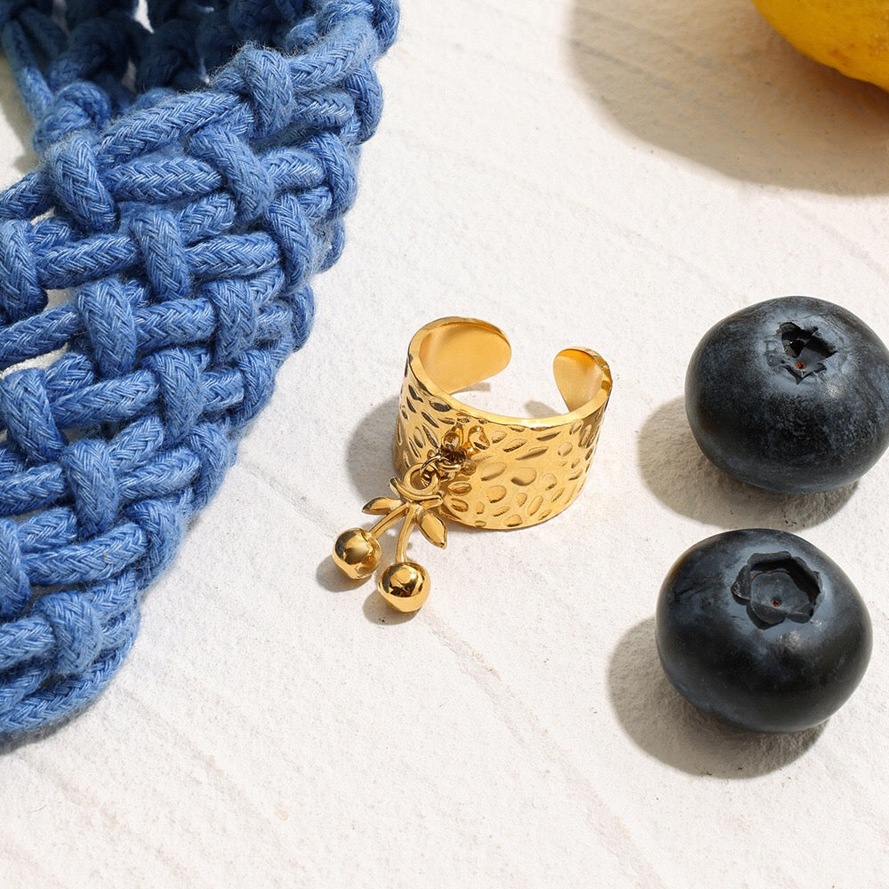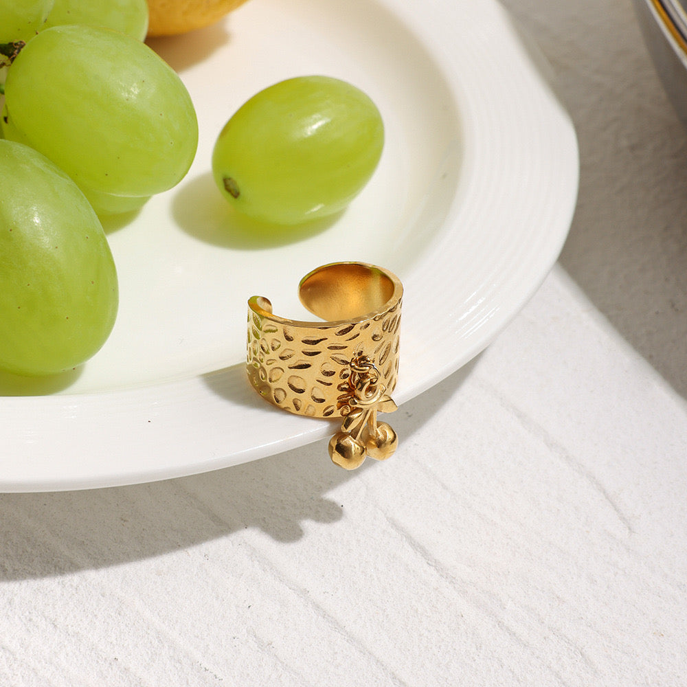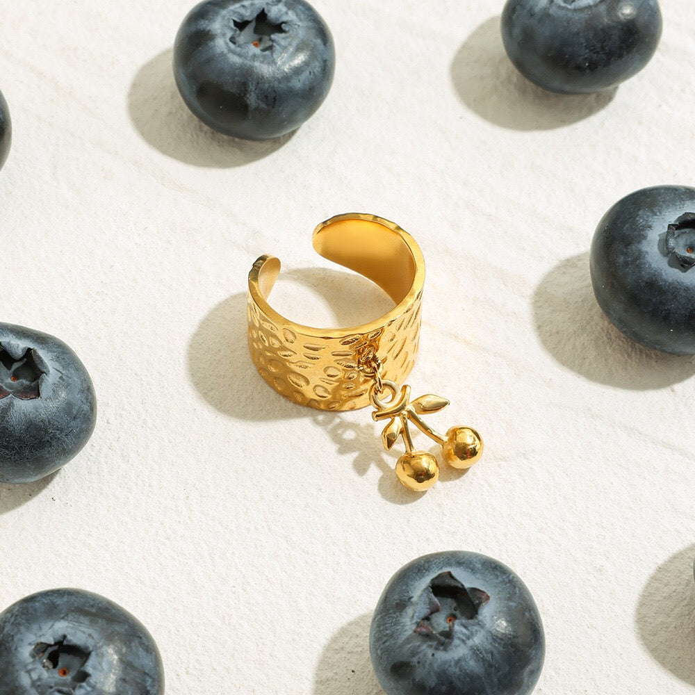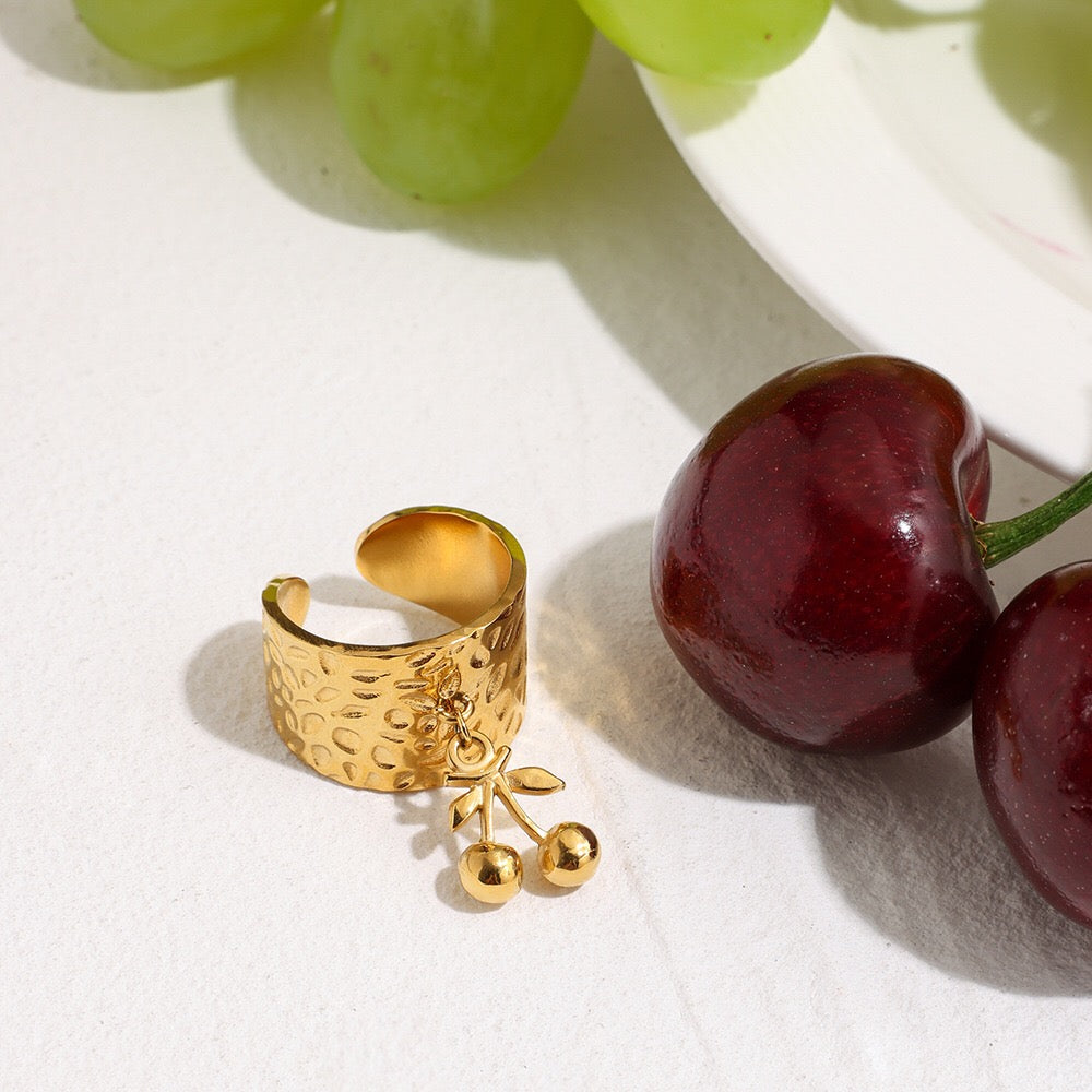 18K Gold Cherry Charm Band Ring
